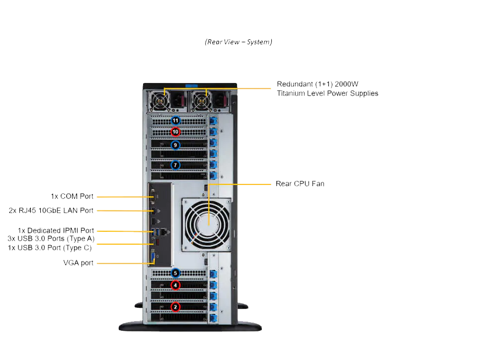 前面板共8個組合 Tri-Mode NVMe/SATA/SAS 。6個PCIe 4.0X16,以提供更高的帶寬和系統(tǒng)升級