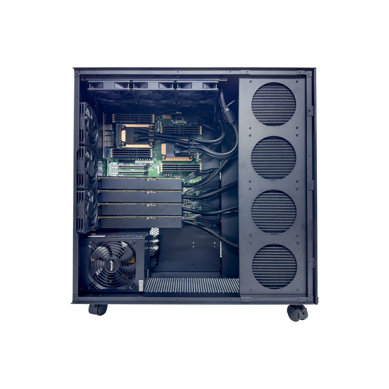 廣州天翱TA-W4608,搭配雙路3rd Gen Intel? Xeon? Scalable 系列處理器,單機(jī)最高支持80核心160線程。該工作站整機(jī)采用液冷式散熱,可以更有效地降低設(shè)備的溫度,提高設(shè)備的性能和壽命,噪音更低,可以提供更加安靜的工作環(huán)境,支持PCI-E 4.0 上的2個(gè) M.2 用于閃存啟動(dòng)和存儲(chǔ)。電源采用2400W雙電協(xié)同工作,足以帶4路4090顯卡。平臺(tái)可應(yīng)用于人工智能/深度學(xué)習(xí),高性能計(jì)算(HPC),云游戲;分子動(dòng)力學(xué)模擬等領(lǐng)域。