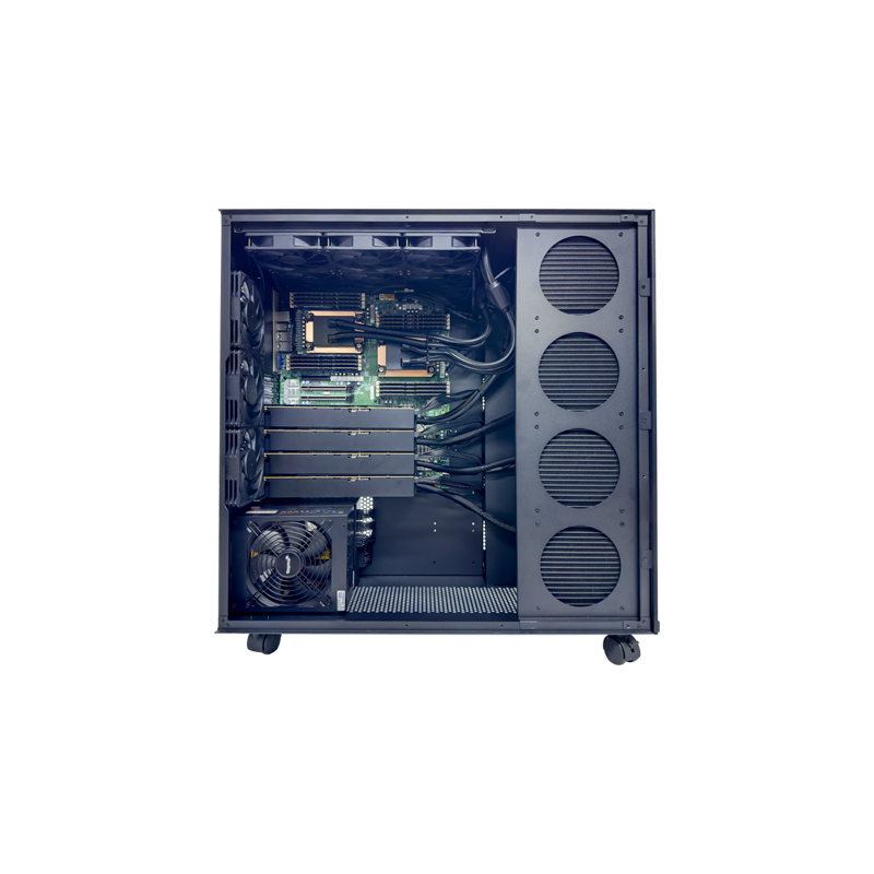廣州天翱TA-W4608,搭配雙路3rd Gen Intel? Xeon? Scalable 系列處理器,單機(jī)最高支持80核心160線程。該工作站整機(jī)采用液冷式散熱,可以更有效地降低設(shè)備的溫度,提高設(shè)備的性能和壽命,噪音更低,可以提供更加安靜的工作環(huán)境,支持PCI-E 4.0 上的2個(gè) M.2 用于閃存啟動(dòng)和存儲(chǔ)。電源采用2400W雙電協(xié)同工作,足以帶4路4090顯卡。平臺(tái)可應(yīng)用于人工智能/深度學(xué)習(xí),高性能計(jì)算(HPC),云游戲;分子動(dòng)力學(xué)模擬等領(lǐng)域。