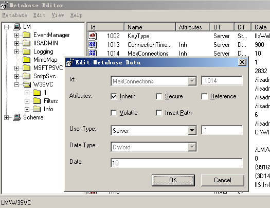 一般地,一個IE瀏覽器產(chǎn)生2個IIS連接,例如,我們在一臺訪問量為26萬IP每天的服務(wù)器上,觀察到這個值峰值為1800。表示大約有900個IE瀏覽器在同時(shí)連接著你的服務(wù)器。