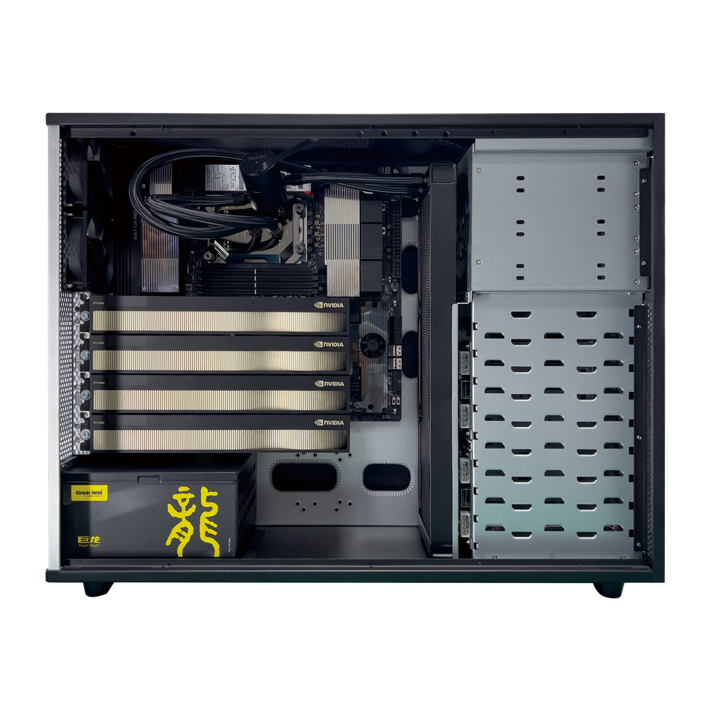 廣州天翱塔式HPC,型號為TA-W4509,搭配最新第四代Inte!°Xeon”W系列處理器,單機最高支持56核心112線程。該工作站配備了最新的 NVME 存儲選項,PCI-E5.0 上的三個 M.2 用于閃存啟動和存儲。同時可擴展4路雙寬GPU運算卡,可廣泛應(yīng)用于人工智能/深度學習,高性能計算(HPC),云游戲;分子動力學模擬