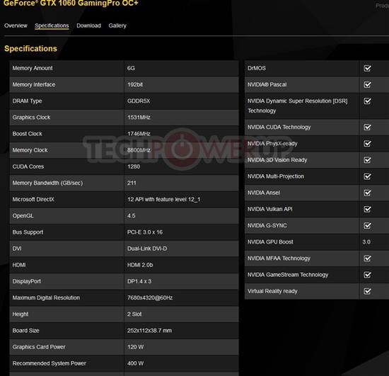 同德公布GDDR5X顯存版GTX 1060:等效8800MHz